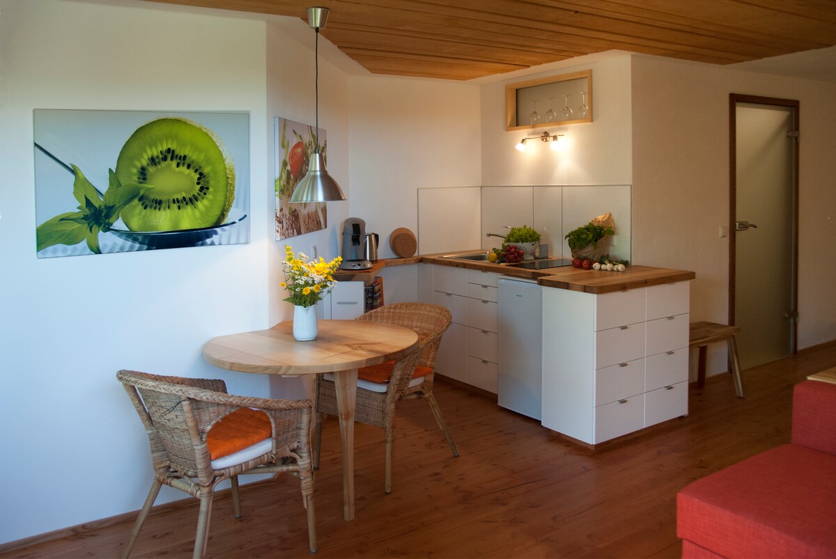 Our quietly located and lovingly modernized farmhouse is embedded in a 4000 sqm large varied terrain, on which our horses also occasionally romp. The two apartments - ideal for two people each - are cleverly designed by hand. With lots of natural wood, to feel completely comfortable, they are bright and friendly. A wide window front, spoiled by the sun, reveals the VIEW through BIRCH TREES into our natural garden.