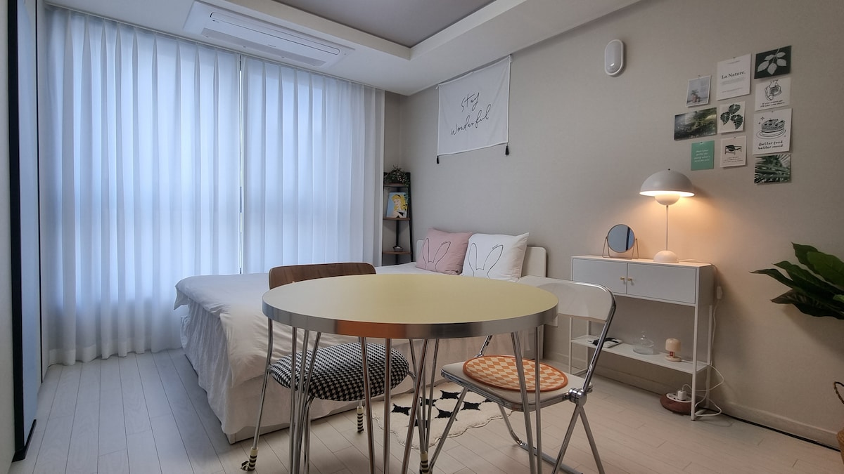 ✅Please read the accommodation✅ description and use it!! ❤️This is a space where we "tried" to be most faithful to the basics of "bed"! ✅Accommodation options✅ - Samsung Smart TV - High-speed WiFi support -Samsung system air conditioner - Samsung Styler -Drum washing machine -Illy coffee machine (capsule provided) -Electric kettle - Microwave ✅Accommodation kitchen options✅ - 2-hole induction stove - Mugs/wine glasses -2 plates -1 pot (medium) -Cooking utensils (ladle, knife, scissors) - Spoon and chopsticks set Our accommodation is simple cooking only (ramen) Please note that it is possible! (❌Pork belly, steak, soup, stew, pasta❌) ✅Toilet/shower room options✅ - Hand wash -Tooth Brush, Tooth Paste -Foam cleansing, cleansing oil -Shampoo/conditioner/body wash - Body lotion -Cotton pads, cotton swabs