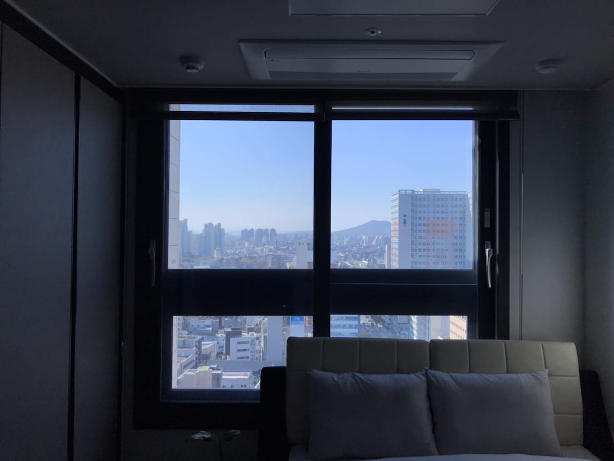 #Clean and fluffy hotel-style bedding#1 minute to Jungangno#High-rise view