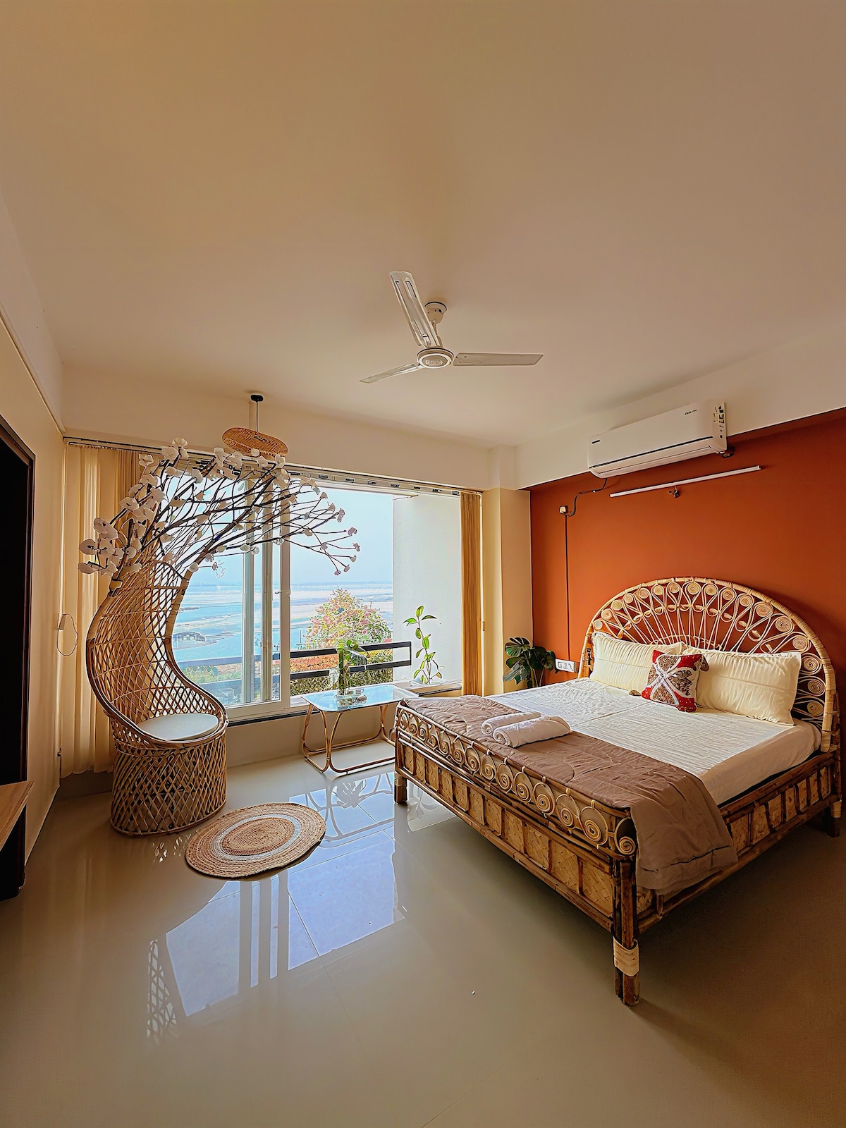 Wake up to stunning, front-facing views of the Brahmaputra River from this beautiful premium 3BHK apartment in central Guwahati. Designed for comfort and calm, the home features two spacious bedrooms with private bathrooms, river-view balconies, airy interiors, comfortable beds and ample storage. Enjoy exclusive access to a well-appointed living room, dining area, and fully equipped kitchen ideal for families, couples, or business travelers seeking privacy and a central riverfront stay.