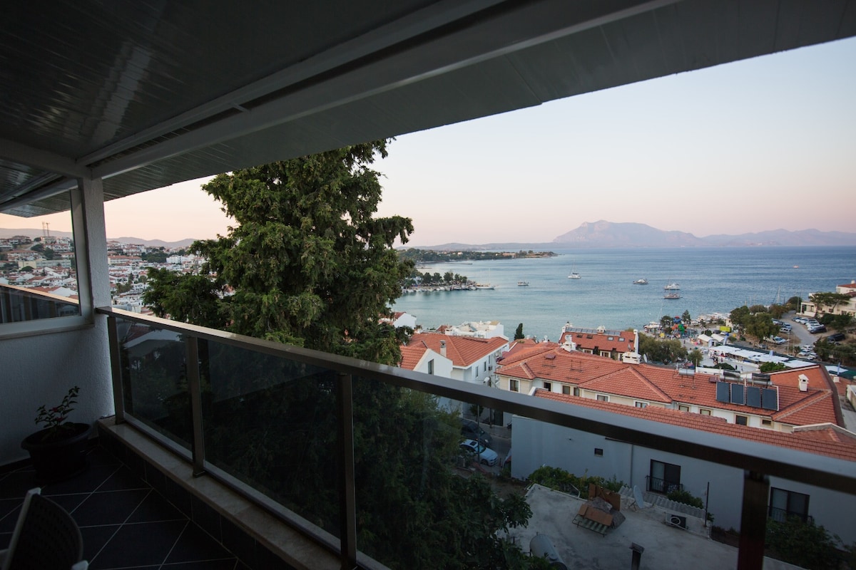 Datça, İskele mahallesi merkezindeki kumluk plajında bulunan evimiz denize sıfır konumdadır, bina 1 yaşındadır, içi yeni döşenmiştir, kendine ait müstakil girişi vardır, iki katlı evin ikinci katındadır. Binada aynı katta başka bir daire yoktur, balkonundan güneşin doğuşunu ve dolunayı seyretmek çok keyiflidir. Önündeki plaj temiz olup denize gönül rahatlığıyla girilebilir. Alışveriş için hemen 100 m mesafede ana caddede çarşı vardır, çok yakınında (100 m) iki adet ücretsiz açık otopark vardır.