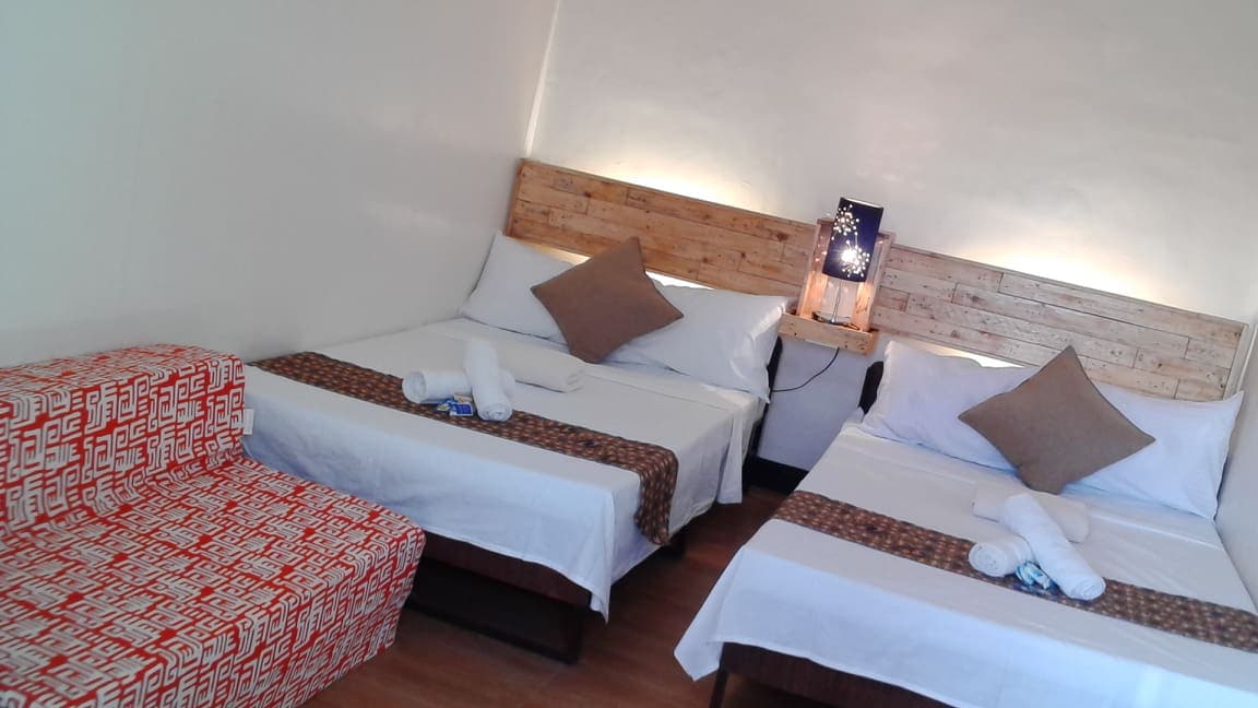 Fully airconditioned and Exclusive space on the spacious second floor with 4 bed rooms. Two rooms have their own bathrooms and two rooms share a bathroom and sink. Large space for Dining, Living, and Kitchen area with Aircon. Ideal for big groups that can comfortably accommodate 10 persons. Toddlers and children below 8 years old are free provided they use the same bed. 5 mins.walk to SM Mall Ecoland, 711, and Day Spa. Big discount for 4 weeks stay or more. Van rental also available.