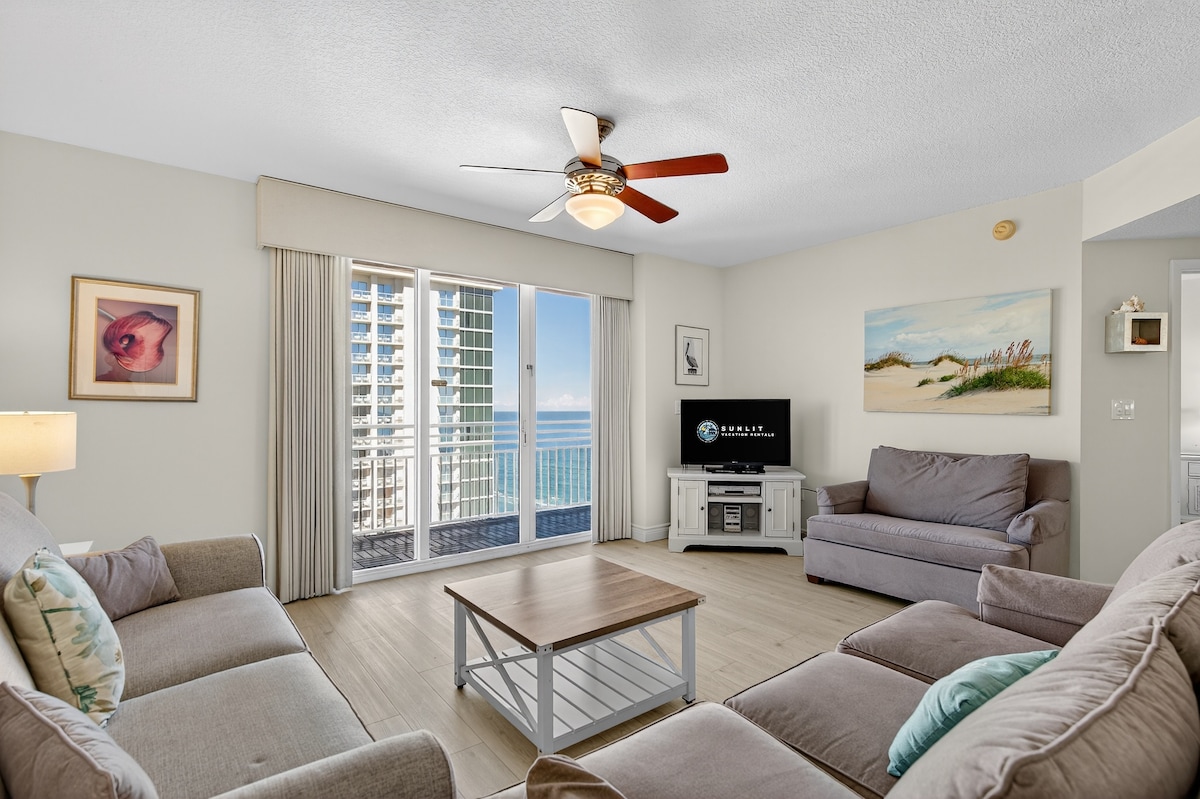 Come enjoy some quality time with your special someone in a condo designed with your comfort and convenience in mind. No upstairs neighbors to disturb you. Amazing breezes and views from your spacious 5th floor balcony. Feel miles away from the world in your room while still being steps away from our each access. ********Pool and all outdoor amenities listed are fully repaired and OPEN!!!!! *********