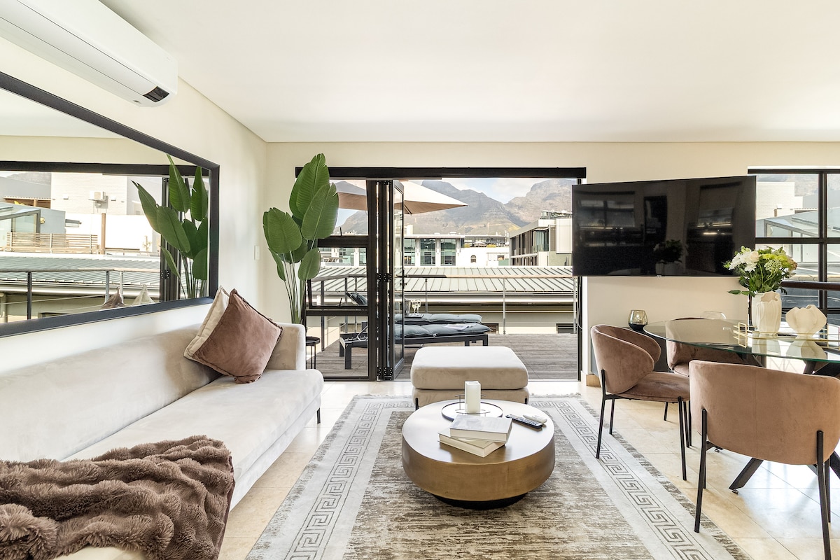 In Cape Town's vibrant de Waterkant, you will find this high rise Penthouse apartment offering a private rooftop terrace with the best views in Cape Town. This city Oasis is surrounded by top class restaurants and cafes within walking distance and only 5 minutes from the V&A Waterfront and Green point Stadium. Amenities in the building include private parking, a Planet Fitness gym and 24h security desk. The apartment is secure and secluded, giving you the privacy to unwind on a getaway.
