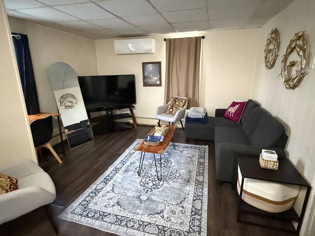 We offer everything to make you feel at home. We are also pet friendly. Enjoy your own space with private entrance, 1 bedroom (queen bed) plus extra sleeping space on a queen pull out sofa. *air mattress and/or inflatable toddler bed also available for extra sleeping (by request)* Fully equipped kitchen and bathroom with full size washer/dryer. Five minutes to border crossing to Maine, USA (Fort Kent). Close to ski resorts (5 mins) and scenic snowmobile trails.