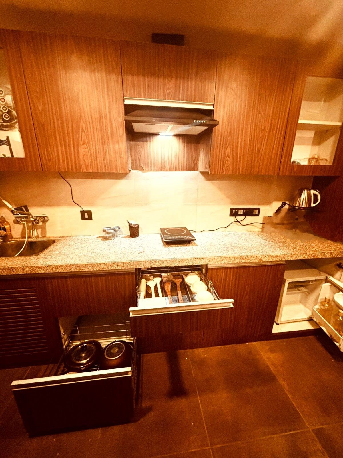 Welcome to Melody by AariaHomez a stunning family friendly luxury apartment nestled in the heart of the mountains, perfect for a romantic getaway or solo adventure. The apartment is just 10 minutes from Pacific mall Rajpur road & 60 minutes from the queen of hills Mussorie. - Comfortable King size bed with premium linens - Offer a kitchenette for your cooking needs - Modern bathroom with essentials provided. - Private balcony to enjoy your morning coffee - Smart TV and High Speed Wi-Fi