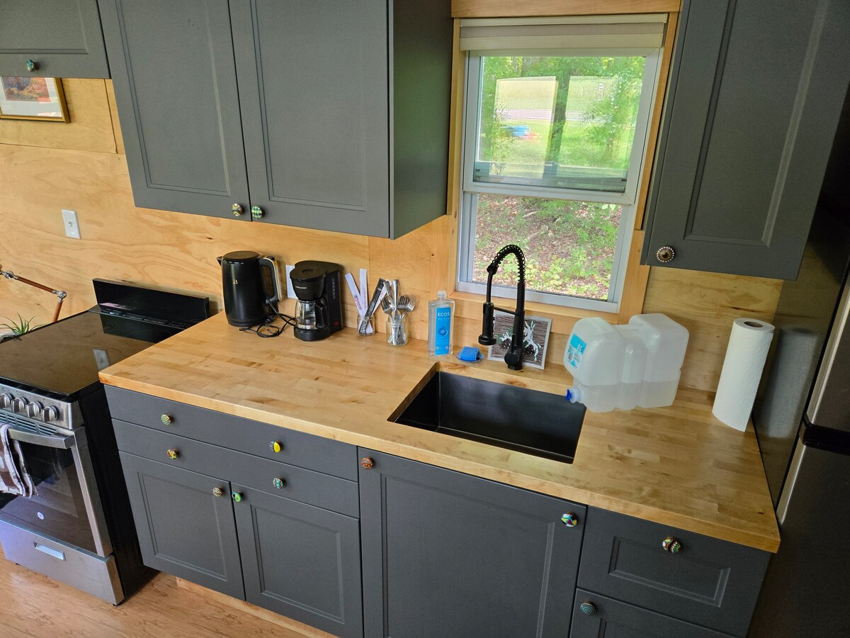 March-April midweek special: Bottle of prosecco, robes/slippers, s'mores. Boutique-luxe tiny home with private hot tub, firepit, and dreamy loft lounge. Plush queen bed, full kitchen, and curated charm throughout. A peaceful & private oasis, yet just a 2-min walk to Chatham’s Main St. lined with restaurants, brewery, shops & theater. The perfect upstate NY getaway for couples—hike, visit galleries, stroll to dinner, or unwind in your own private spa oasis @artparkhomes.