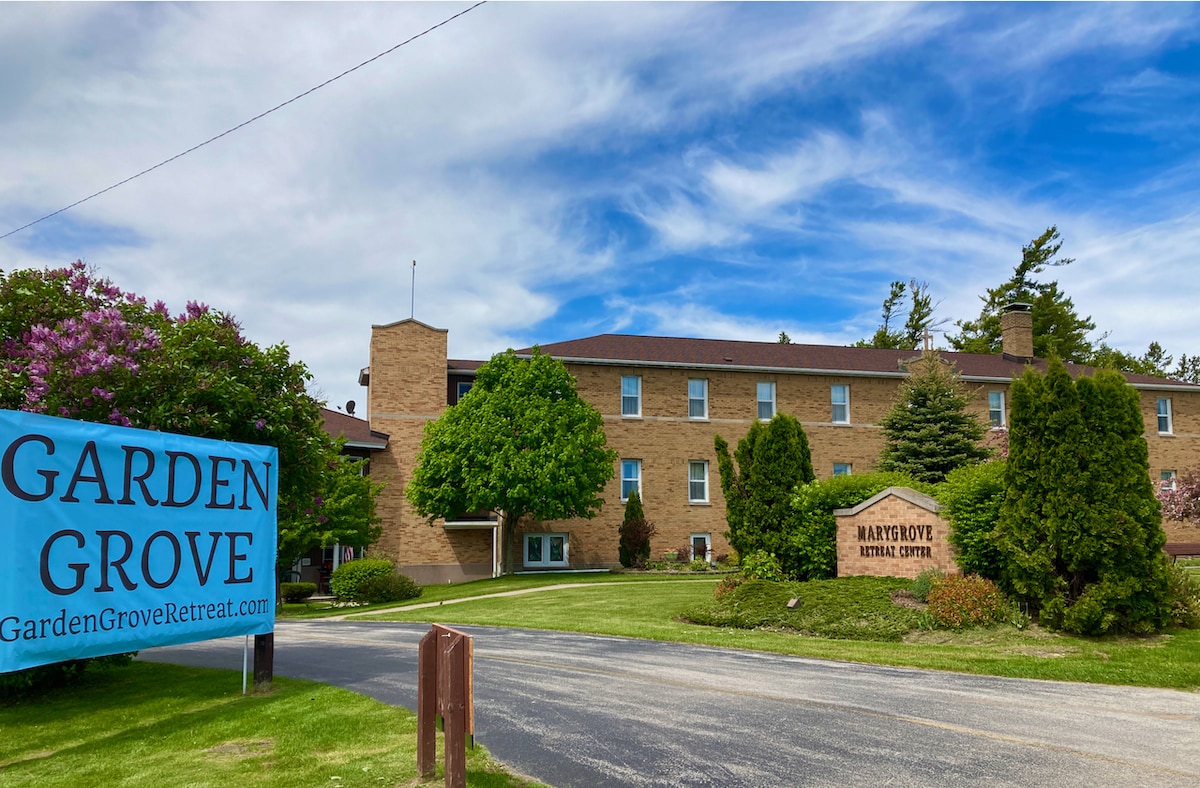 The best place to stay on the Garden Peninsula! Garden Grove Retreat & Lodging, a historic bed & breakfast, and once a Catholic retreat center, is located in the quaint Village of Garden. Enjoy 40 acres of beautiful grounds and cedar forest, a relaxing respite from the stresses of life, a place where you can enjoy the quiet countryside, hiking on-property, and nearby access to Lake Michigan, Garden Bay, and Big Bay de Noc. 1 hour to Pictured Rocks National Lakeshore. Coffee shop. Self-check-in.