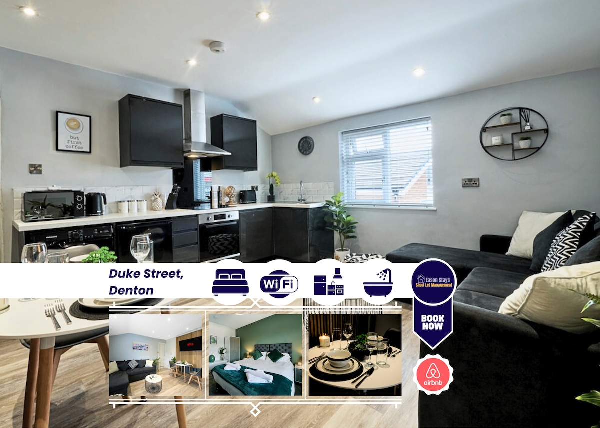 Welcome to our cosy and stylish 2-bedroom maisonette located in the heart of Denton, Manchester. Perfect for families, couples, or business travellers, this spacious holiday let offers comfort, convenience, and a real home-from-home feel. Two Comfortable Bedrooms – Relax in a beautifully furnished double bedroom and a bright twin room, ideal for both adults and children. Fully Equipped Kitchen – all the essentials included. Spacious Living Area - essential amenities included.