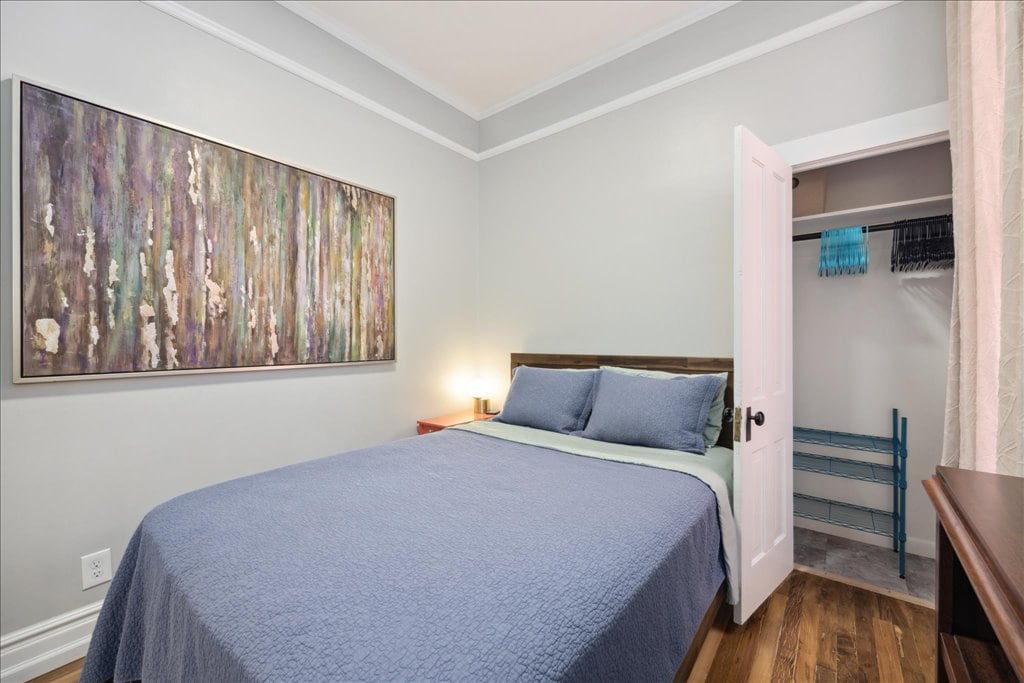 This unique place has a style all its own. Abstract artist Romelle is known for colorful, energetic work that explores the modalities of healing with color. This spacious studio comes equipped with a pillow top queen bed, kitchenette, and glass tiled en suite bathroom. Work from home with blazing internet speeds, or venture out to the many coffee shops, and restaurants steps from our door. Our central location provides the perfect launch pad to all of your travel and business needs in Denver.
