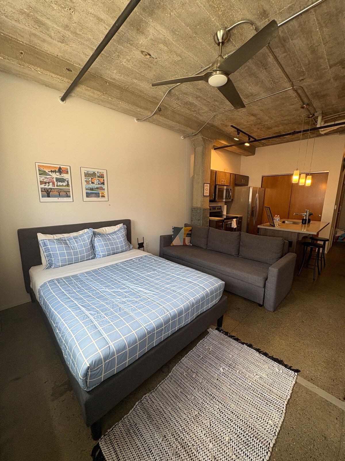 Cozy Studio Loft in the Heart of Downtown – Walk Everywhere! Perfect for remote work, romantic getaways or business travel, this modern urban retreat offers everything you need just steps from your door. Enjoy a plush queen bed, comfy sofa bed, free parking, and a fully equipped space designed for comfort and convenience. Surrounded by the best cafés, restaurants, and nightlife, it’s the ideal spot to explore Des Moines on foot and unwind after a busy day. Your perfect city escape awaits!