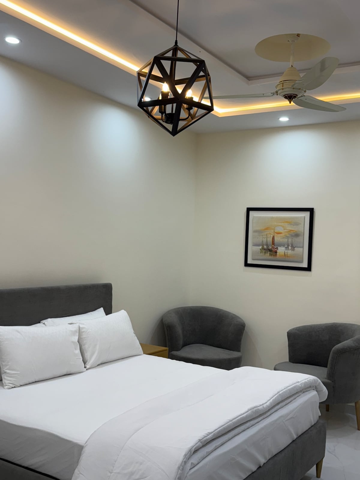 Forget your worries in this spacious and serene space. The Space Welcome to your home away from home — a beautifully designed 1 bedroom apartment located in the heart of DHA Phase 2, Islamabad. Enjoy a perfect mix of comfort, style, and convenience, just steps away from Giga Mall, Central Park, and Islamabad Highway. Our apartments feature: • High-speed Wi-Fi & Smart TV • 24/7 security & power backup • Dedicated parking