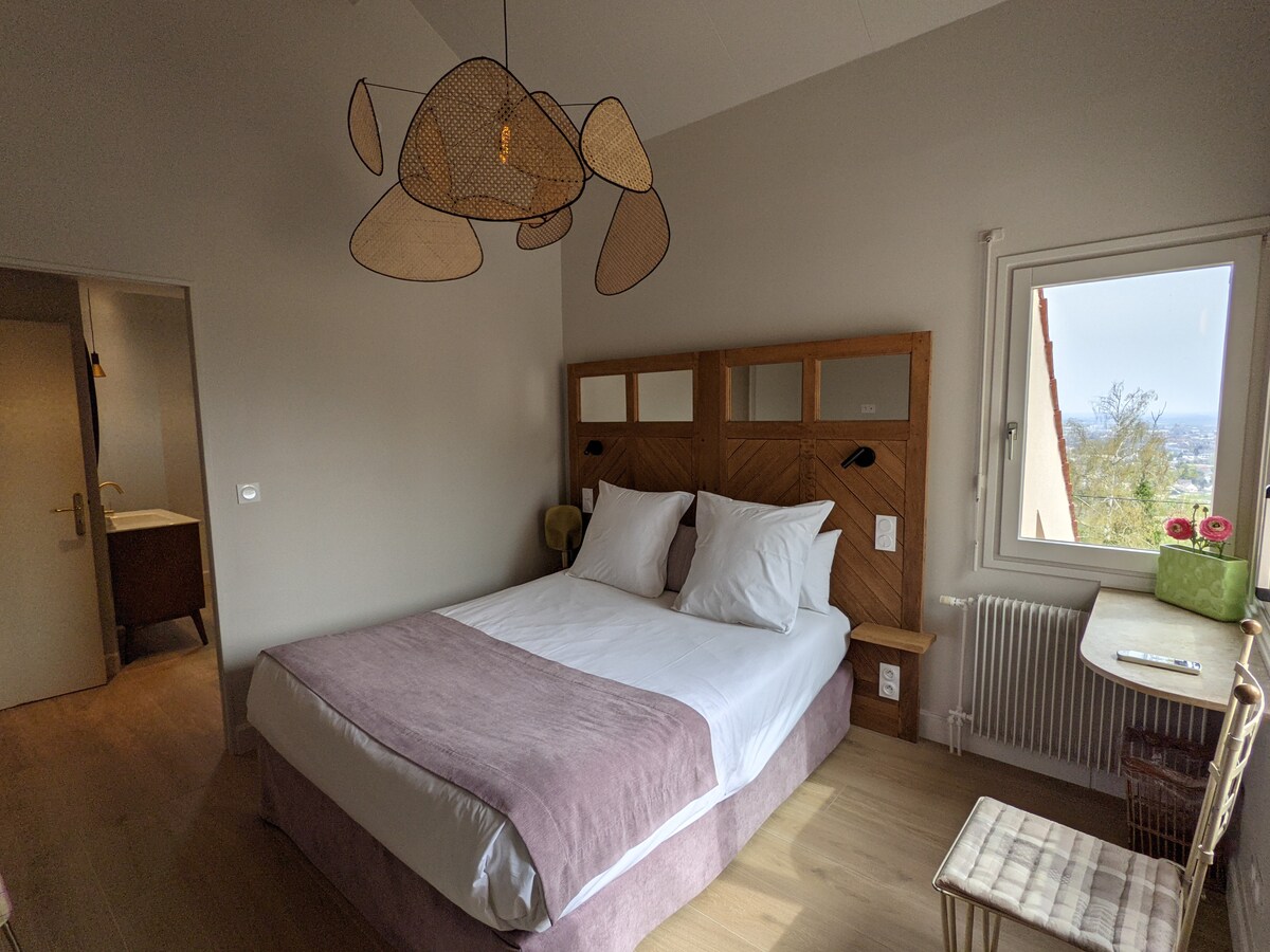 We welcome you to our home, in a homestay, in a house located in a quiet residential area of Dijon. Spacious room with a private terrace overlooking the garden. This charming place to stay offers easy and immediate access to shops, activities and restaurants in the heart of Dijon's old town. We have welcome products, bathrobes and a Nespresso machine available for you.