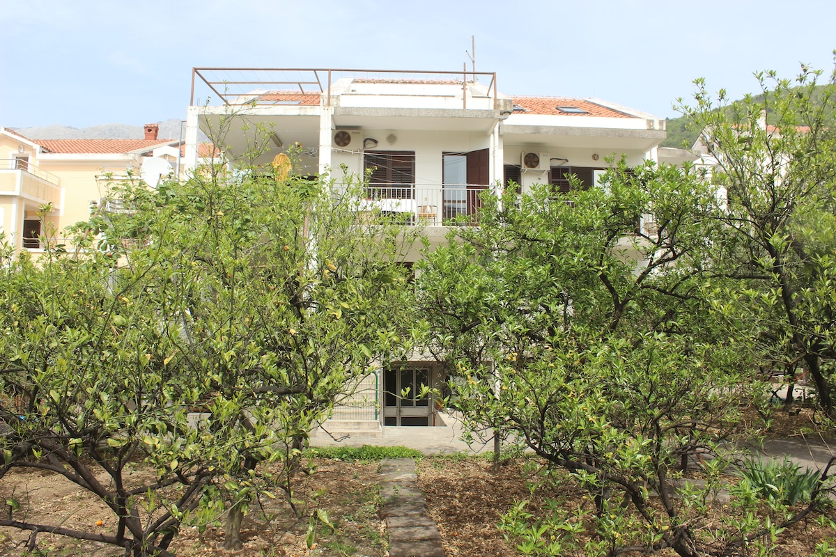 The apartment is 150 meters from the beach and 15 minutes walking to the Old town, witch is under UNESCO protection. The apartment is very comfortable with equipped kitchen, free Wi-Fi and private parking place. Market, bakeries, fast-foods are located nearby and taxi/bus station, too. Hospital and pharmacy are 50 meters from the house. Airports distance: Tivat 5km, Podgorica 40km and Cilipi (Croatia) 42km. The place is very quite. Apartment has big terrace with beautiful sea view.