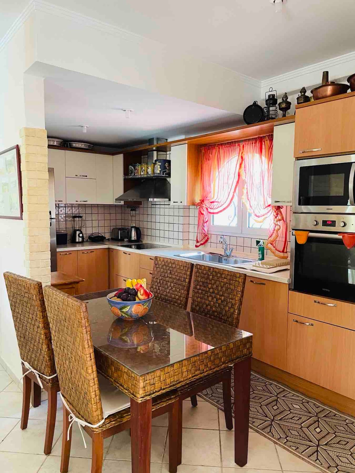Pleasant accommodation in a residential complex. A renovated (2018) apartment drowned in a cretan garden full of olive trees, lemon trees, carob trees, cypresses, scents and bird ticks. A quite, bohemian, distinctive nest next to the sea for couples, families and even group of friends who seek the bliss of nature, 5 km from Agios Nikolaos.An attempt to overcome the dividing line between indoor and natural environments and reconcile the Greek tradition with modernism and comfort