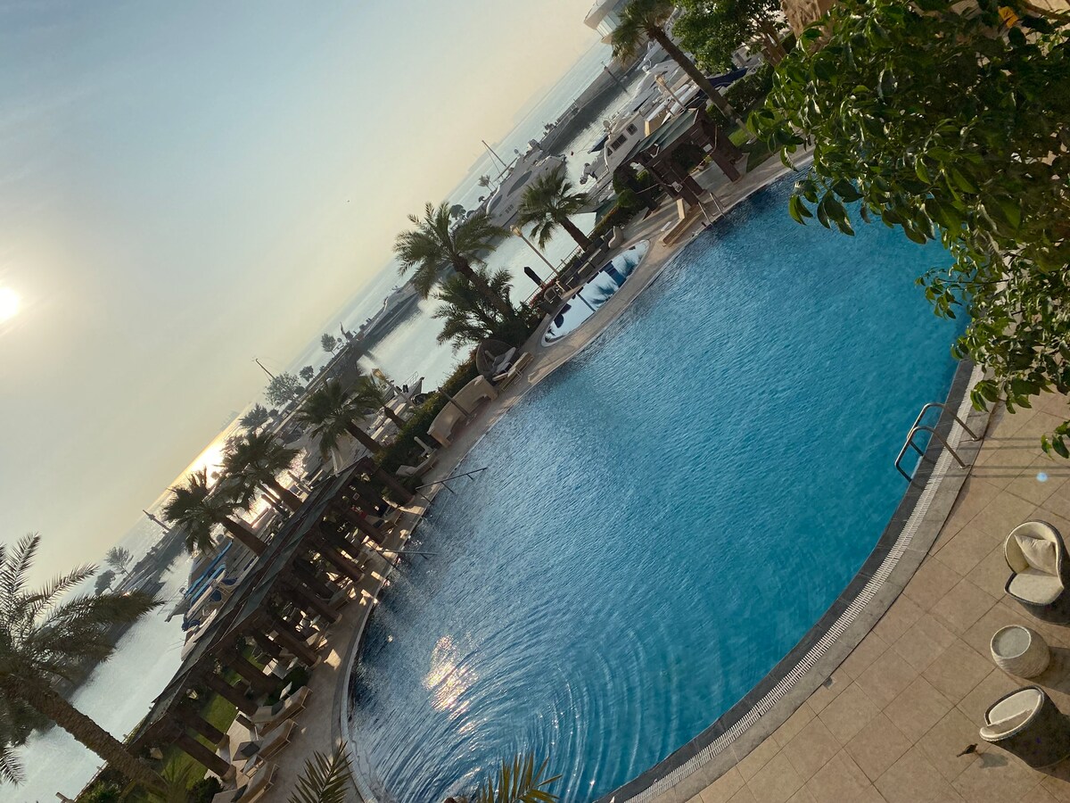 60 SM studio type size From the heart of Porto- Arabia, we take you to another level of comfort, you will enjoy the sunrise and sunset. If you have come on business trip an office space equipped with high- speed WI-FI for you to work and enjoy a breathtaking of the sunset and make you feel at home. The GYM, pool ,Jacuzzi available as well. Metrobus is 2 minutes walk. all café, restaurants supermarket are close to you. check-in at 2 PM by providing passport copy at the Reception 24/7 welcome home