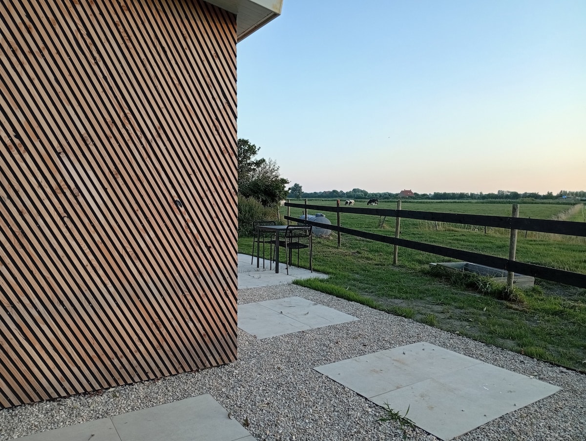 This stylishly furnished farmhouse can accommodate 6 people. The house was completely renovated in 2019 and has a very high level of finish. From the house, you have a beautiful view over the surrounding fields. The house features a luxury kitchen, bathroom with sauna and a south-facing terrace.