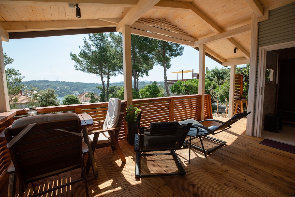 The lovely wooden ECO house is situated on a natural stone cliff of a fenced private property in the middle of the pure nature of the island. After a busy summer day, swimming in hidden coves a few minutes walk from your home or exploring the island, sports activities, visiting wineries, olive groves, and restaurants in lively island towns far from tourist crowds, you will appreciate the simplicity of island life and the friendliness of the people. A place for an unforgettable summer. Welcome :)