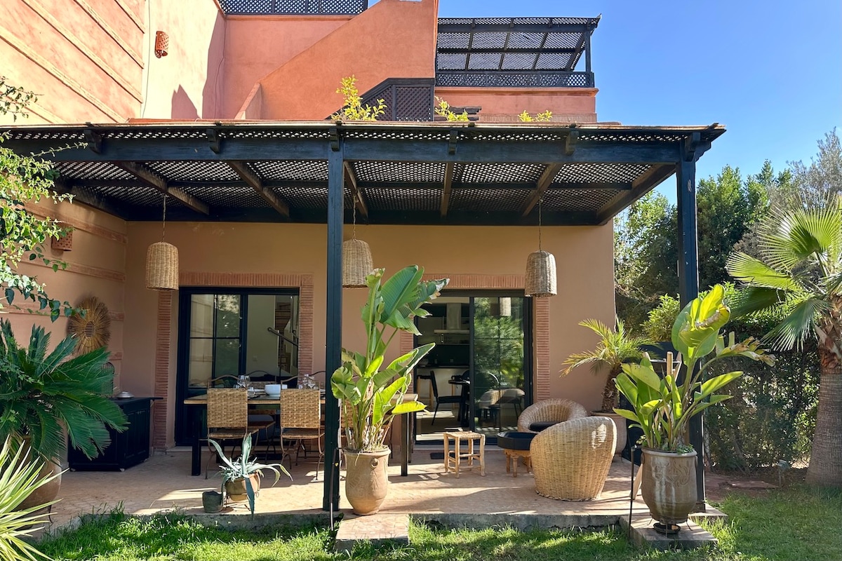 In the heart of a private estate nestled just minutes from the enchanting Marrakech. This clever blend of traditional architecture and modern design makes it a unique retreat highlighted by warm colors and natural materials. Enjoy your panoramic view of the Atlas Mountains as well as the numerous golf courses nearby. After a day of discoveries, you will delightfully find the shade of the lounge opening onto the private pool.