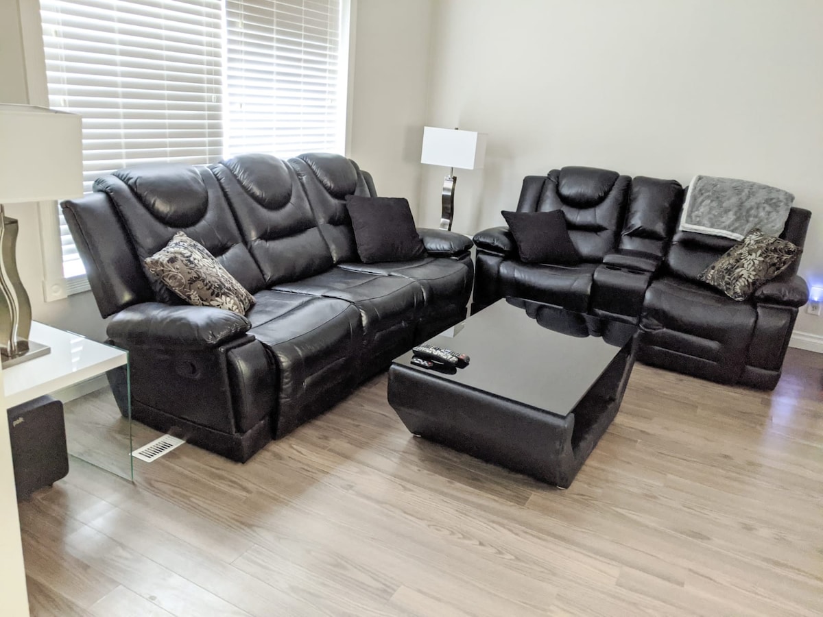 1150 square feet of space. - The beds are amazing!! - Fully furnished - Open concept - All amenities - Very quiet - In a very good neighbourhood - Front and back entrance for privacy - Close to all locations and airport - Full Wifi -2 fire cubes (unlimited channels and movies - Access to all streaming apps -Master bedroom is enormous with your own personal wall closet to make you feel like you are at home. -Parking stall is directly behind the door that leads up to the upstairs