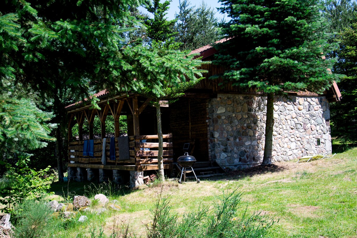 A cottage in the woods with a fireplace | a garden for the dog
