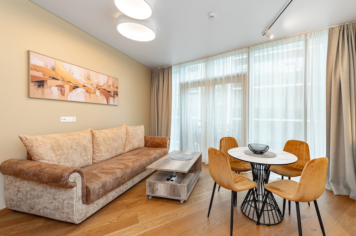 Relax in a cozy studio in the very center of Druskininkai resort – a new building, Nemunas project. Here you will find everything you need for a comfortable rest: a modern interior, a fully equipped kitchen, a comfortable bed, a balcony overlooking the green nature. Just a few minutes' walk to the water park, spas, restaurants and Nemunas coastal walking trails. Great choice for both couples and solo travelers looking for rest and peace.