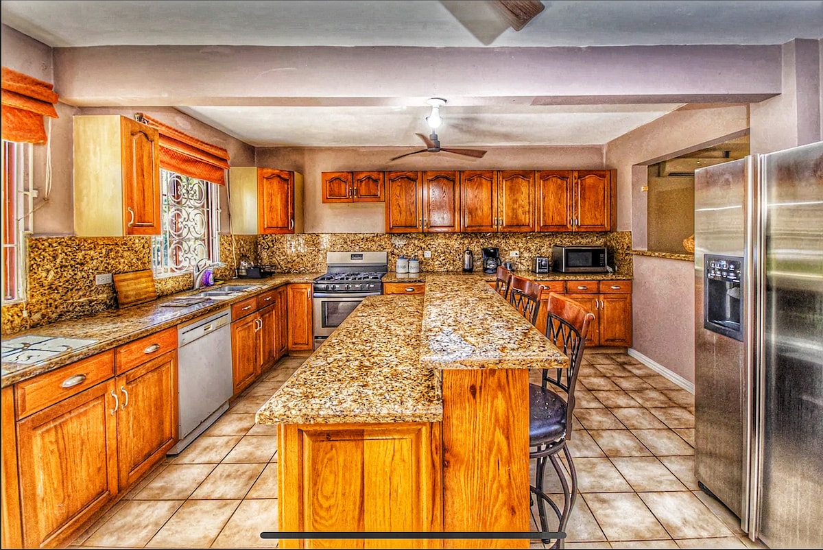 Tucked away in the cool hills above Browns Town, this bright villa blends indoor comfort with outdoor serenity. Our signature screened gazebo with swing bed is made for reading, napping, or stargazing; no bugs, just breeze. Inside: 2 king bedrooms, 2.5 baths, full kitchen, 75" TV, dedicated office, and fast Wi-Fi (136 Mbps). Outside: gated parking, local shops steps away, beaches 15 minutes away. Perfect for couples, families, or remote workers craving peace, privacy, and genuine Jamaica. 🇯🇲