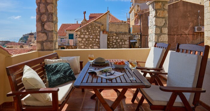 Wake up to sunlight pouring through skylights in this modern loft with historical charm. Sip a glass of wine and watch the world go by from the terrace of this updated apartment in a historic building. Your trust and security are our priority! The studio is located by Buza Gate entrance, one of three main entrance to the pedestrian zone of the Old Town of Dubrovnik, which makes your arrival hassle-free and steps-free, even with luggage.