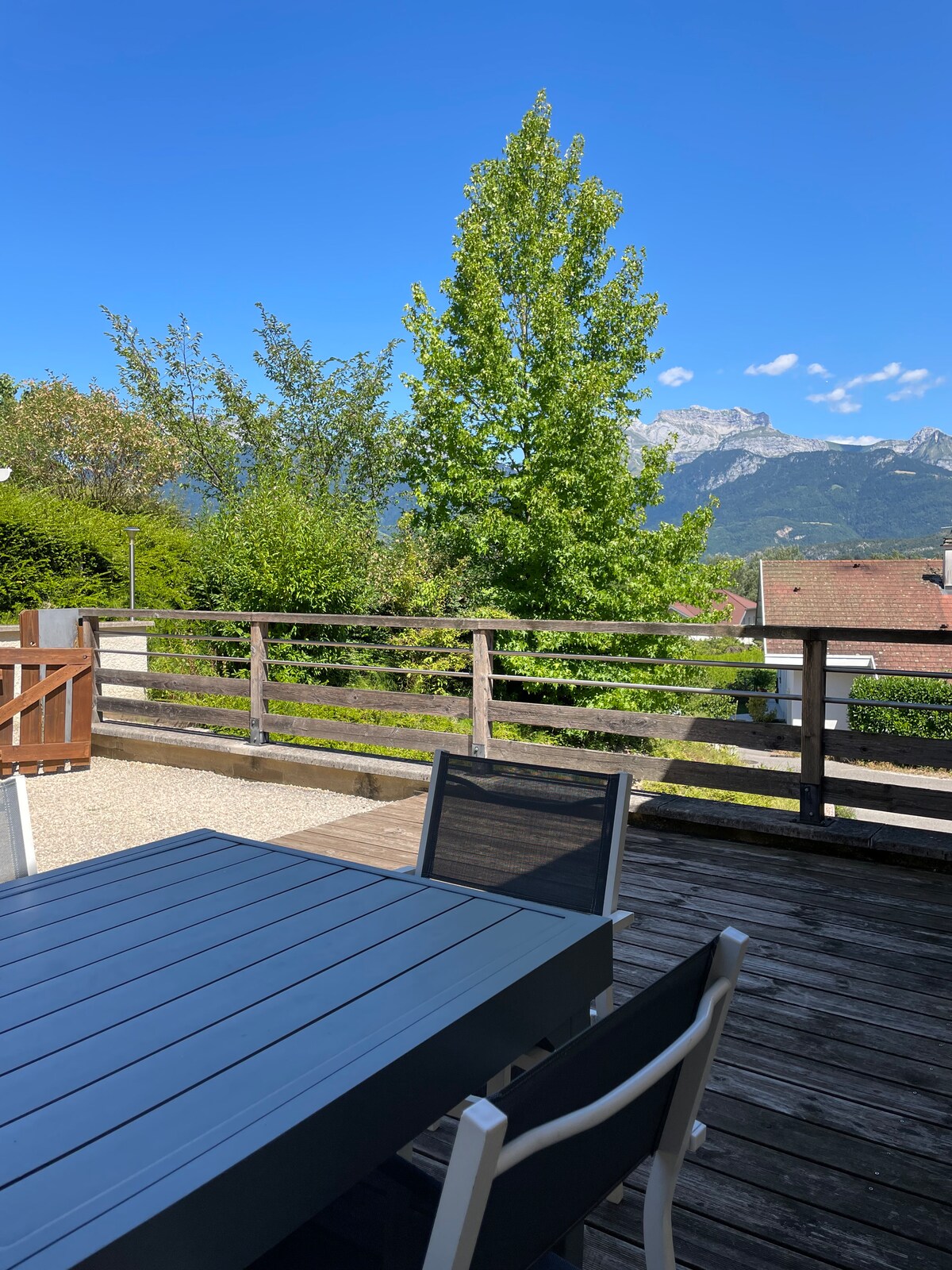Favorite! T3 apartment (61 m2) ground floor, modern and warm, ideally located a few meters from the bike path and the lake. You will enjoy a nice view of the mountains and appreciate the small city center of Duingt with its old bell tower and small shops that are close to the apartment. This property, located in the heart of a pretty condominium built in 2019, fully equipped with new amenities, has a private parking space. Looking forward to hosting you there!
