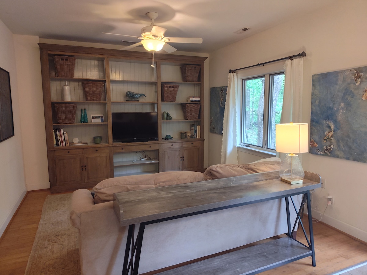 Experience the beauty of Duke Forest in your back yard! Cozy and quiet in the trees, yet 2 miles from Duke University. King sized tempur-pedic for an amazing nights sleep. Our wonderful studio apartment boasts a well-equipped kitchenette, a Roku device to access your streaming apps’ accounts. A beautiful, private deck with panoramic views of Duke Forest. Walk right onto Sheperd's Trail, curated by Duke University, from the back yard. 2 miles to Duke Hospital. 3 miles to downtown Durham.