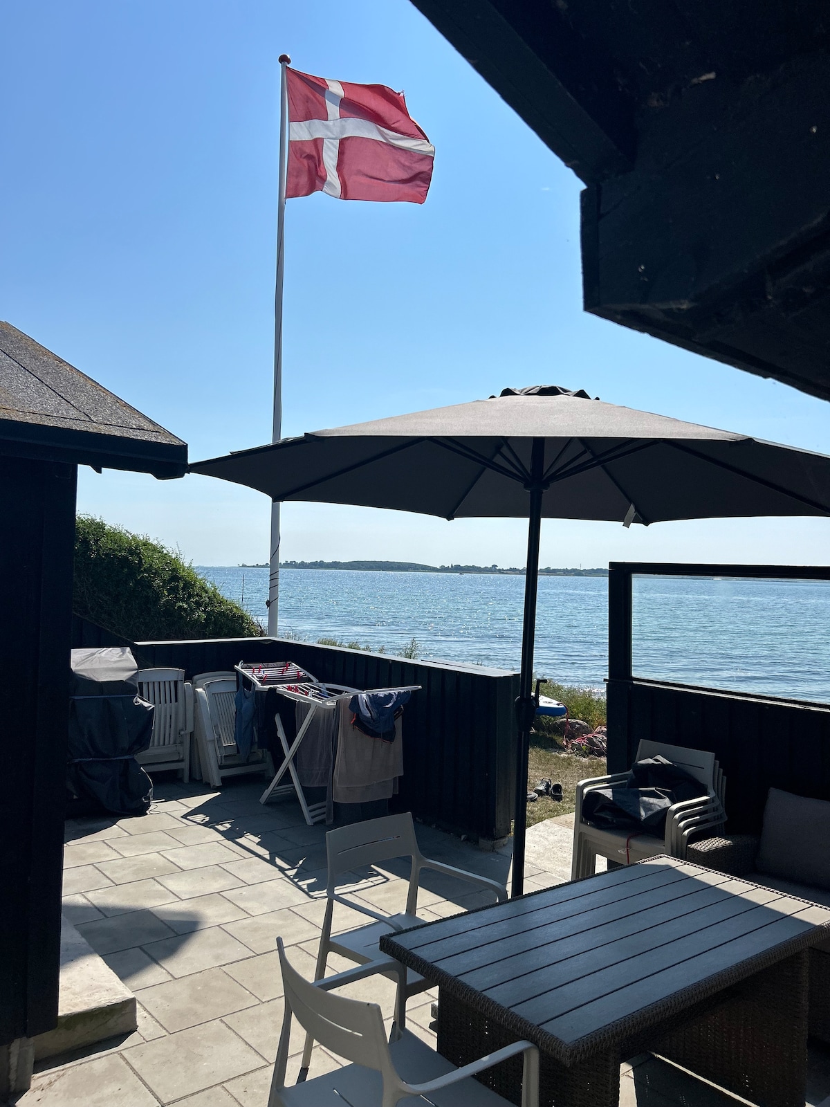 At bo i vores 75 kvadratmeter store ferielejlighed giver vores gæster en helt særlig fornemmelse af ferie. Når man åbner døre og vinduer, strømmer lydene ind fra skovens, havens og havets fugle. En duft af frisk havluft møder ens næsebor. Også lyset oplever vores gæster, som noget helt særligt. Specielt når aftensolen sender sine stråler ned på de omkringliggende øer, må man knibe sig i armen for at sikre sig, at man ikke drømmer.