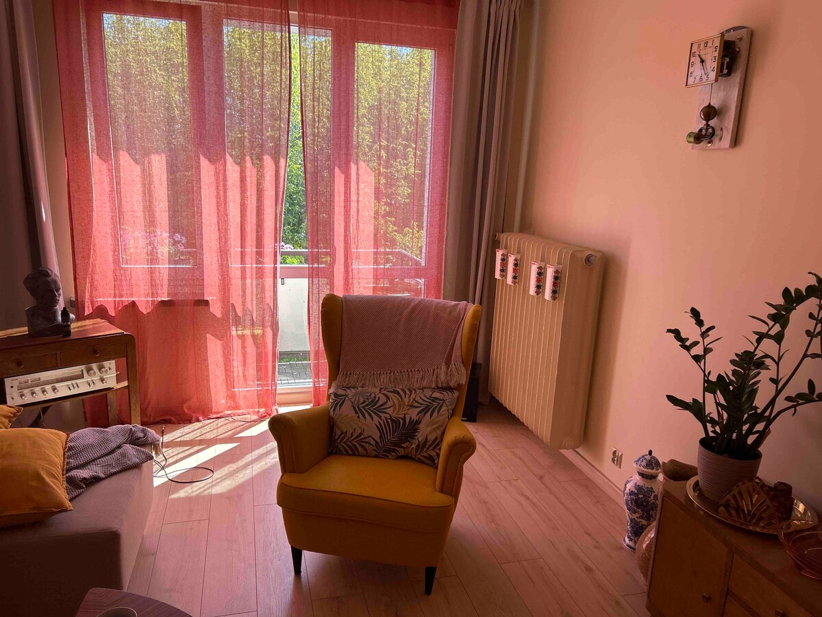 The apartment is tastefully decorated, spacious, bright and functional. A spacious balcony allows you to enjoy the sun. Perfect for a single or a couple. Pets are welcome - but please let us know. Free parking in a fenced area or on the street, fast wi-fi, Android TV. The apartment is located close to the Old Town and the Vistula riverfront.