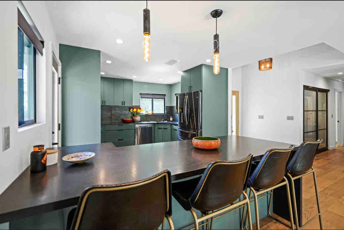 Built in 1949: original charm accented by modern updates. Living room has large windows for abundant natural lighting. Multiple patios with views of Silver Lake. ○3 bedrooms: 2 queen beds, 1 king ○2 updated bathrooms with standing showers and tile floors ○Kitchen: original counters, cabinets, and Saltillo tile floors and updated appliances ○Roku smart TVs ○Fast Wi-Fi (mesh, tri-band router) ○Driveway parking ○Free in-unit washer/dryer ○Central A/C & heat ○Walkable to restaurants (steep street)