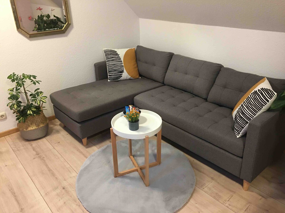 A lovingly furnished apartment in the countryside is waiting for your visit! The apartment has 1 room with a sleeping area, dining area and cozy relaxation corner. The center and the harbor can be reached in about 10 minutes by car or bus. Lots of shopping nearby