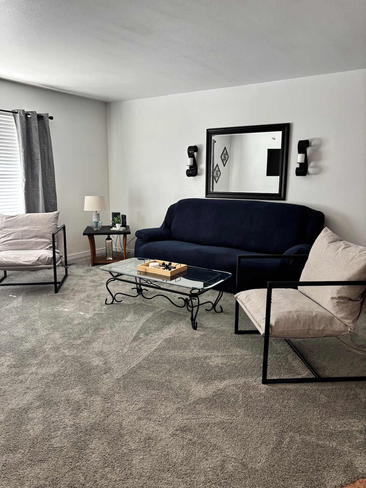This home has wood floors. 1200sf. Front porch with seating overlooking flowers and fruit trees. Huge fenced-in back yard with 2 large trees and a fire pit with seating and a grill. Wine fridge. 2-car covered parking. Quiet neighborhood. Some board & video games for the kids. My husband and I are people that love life and people. We have put so much love into this home, I'm sure you will be comfortable! Also suitable for the fur babies!Check out the Blue binder for rules & points of interest!