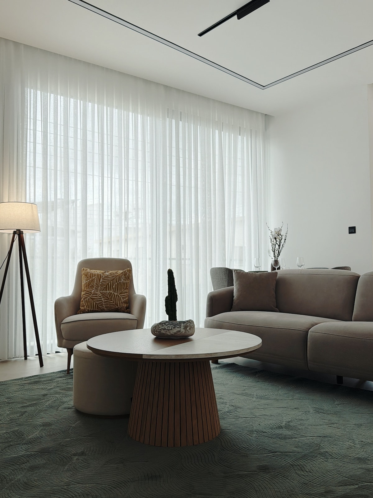 This is a brand new two-bedroom 89 sq.m. apartment, situated on an exclusive complex called Interlace, comprising of only nine apartments and located in a serene residential area but in very close proximity to the city center. The apartment is on the third floor with an excellent view of the city. Immaculately dressed, the interiors are an appealing balance of modern and retro, where an earthy color palette is boosted by branded high-end furnishings.
