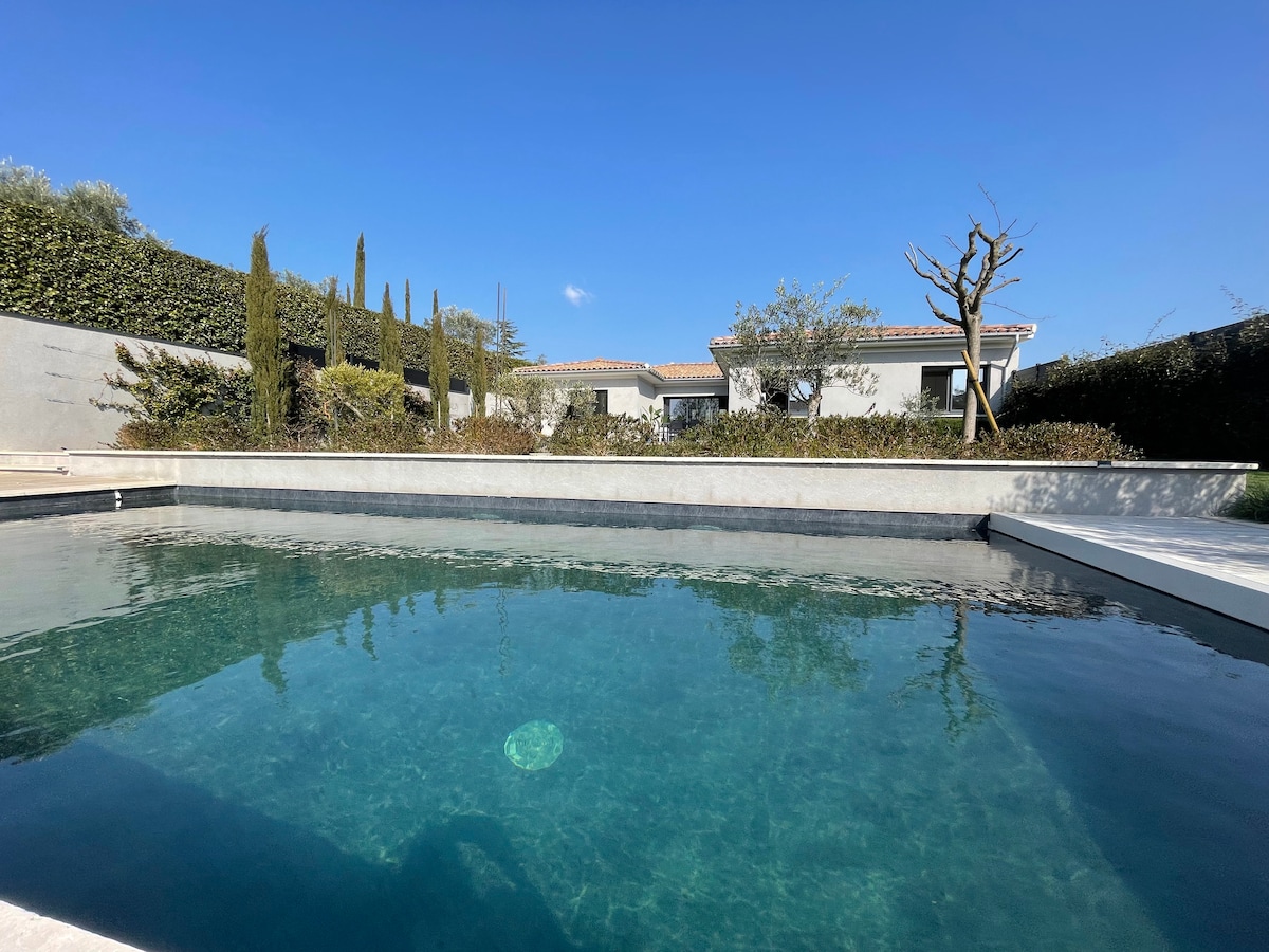 In the heart of Aix en Provence, a few meters from the Relais et Châteaux Le Pigonnet, and close to the Place de la Rotonde, on foot. New architect-designed villa with large kitchen and large living room and patio, 1 master suite, 2 double bedrooms, 1 single bedroom, 1 isolated office, 1 beautiful game room with ping-pong, 2 large double bathrooms and 3 toilets. Air-conditioned villa, bathed in light, absolutely quiet, with its beautiful heated swimming pool and 2 parking spaces, in the heart of a landscaped garden.