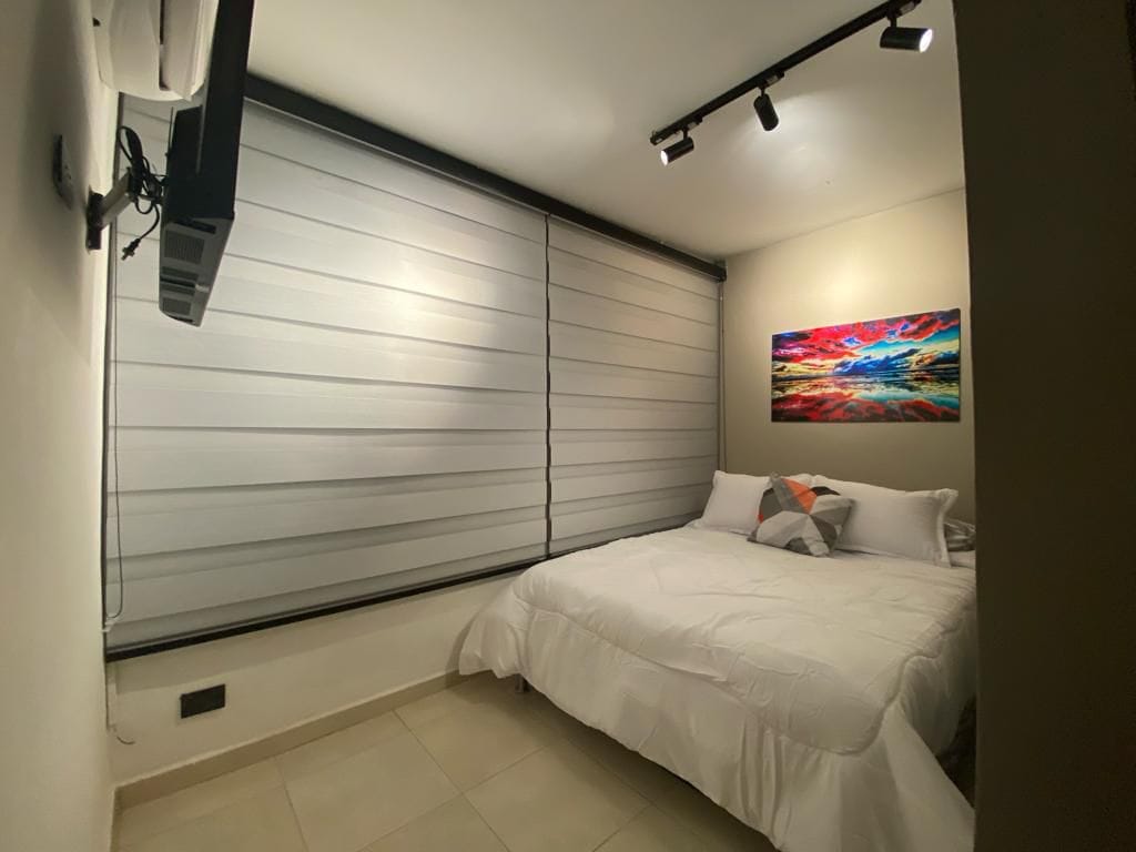 Modern ApartaSuite in the heart of Cali – Comfort. Enjoy a unique experience with a strategic location in downtown Cali. Perfect for travelers looking for comfort, tranquility, and proximity to everything the city has to offer. Wet area with Jacuzzi, ideal for relaxing after a day of sightseeing or work. You're within walking distance of green areas, main avenues, public transportation stations, supermarkets, restaurants, and bars. Enjoy a great experience!