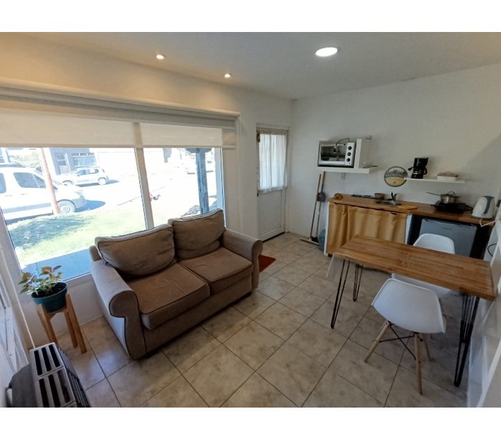Enjoy the simplicity of this quiet, centrally-located home. Studio apartment for two people, features a queen size bed. Kitchen equipped with everything you need for cooking. Bathroom with shower panel and good pressure, Underfloor heating. Free WiFi (Although we have the best service available, depending on the weather, it may suffer interference, because the internet in El Chalten works with satellite signal. There is not yet fiber optic in the town.) and TV with streaming service