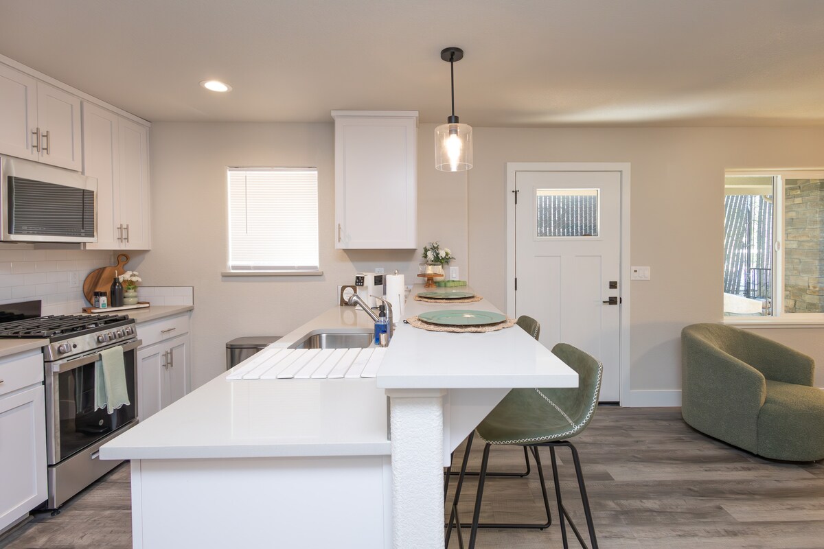 Escape to the mountains in this 2 story, one bedroom plus sleeping loft guest home - right on a gorgeous fishing pond. Feels like you're in the middle of nowhere, yet minutes to Starbucks, a grocery store, pharmacy, restaurants and more! There is a spacious living room with a large flatscreen TV, a Nespresso machine for your morning coffee and pond views out the kitchen window. Brand new furniture and comfy mattresses await you! Step outside and you’ll have access to a basketball court!