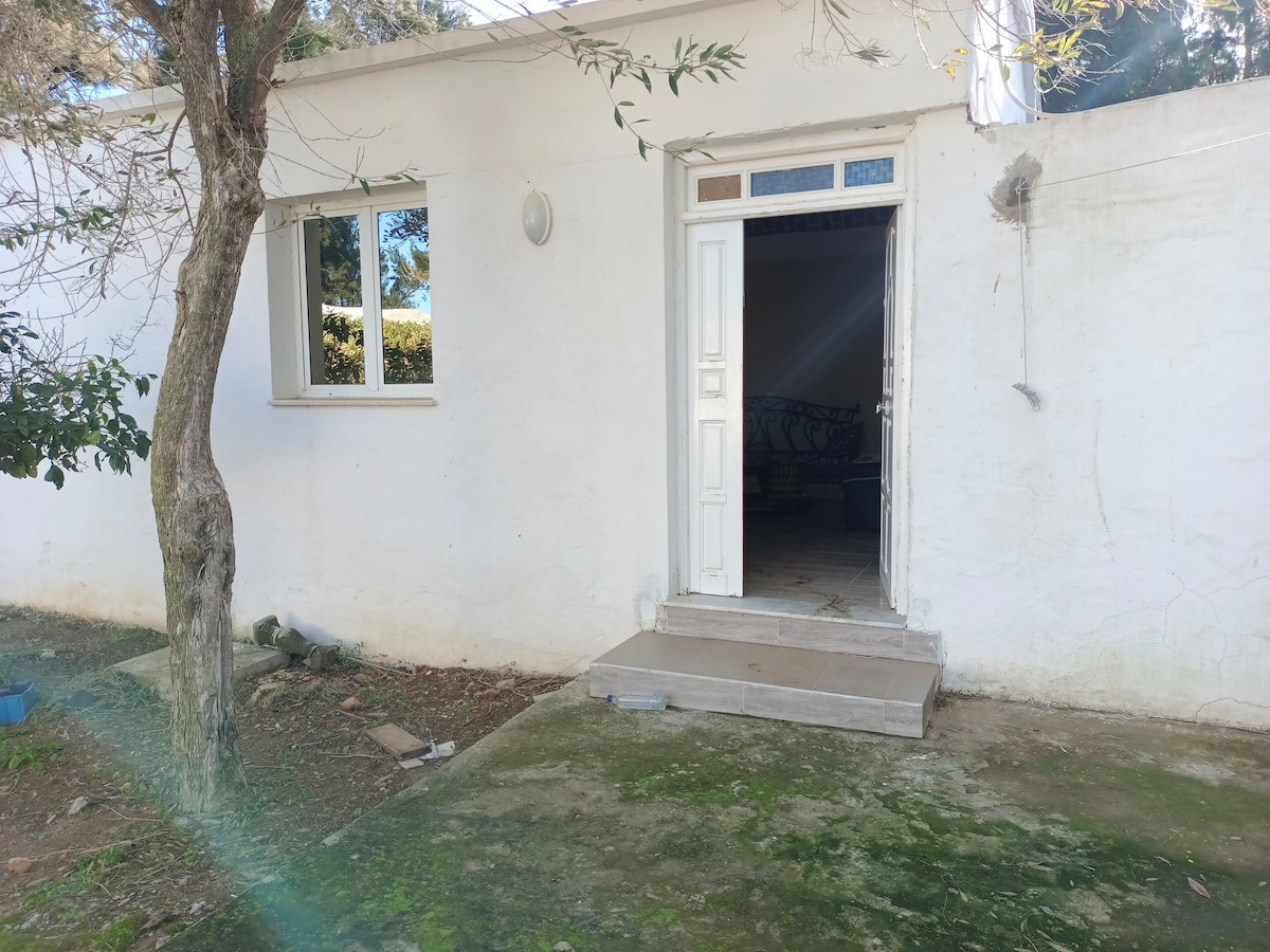 Relax in this unique and quiet accommodation. A ten-minute walk from the beautiful azure beach of El Hawaria and under a beautiful hill, the spacious, comfortable and secluded blue house allows you a total change of scenery. This rural area allows you to enjoy nature, animals and tranquility while having all the comforts necessary for a pleasant stay. The 8-meter by 5-meter pool adds a great plus to your stay