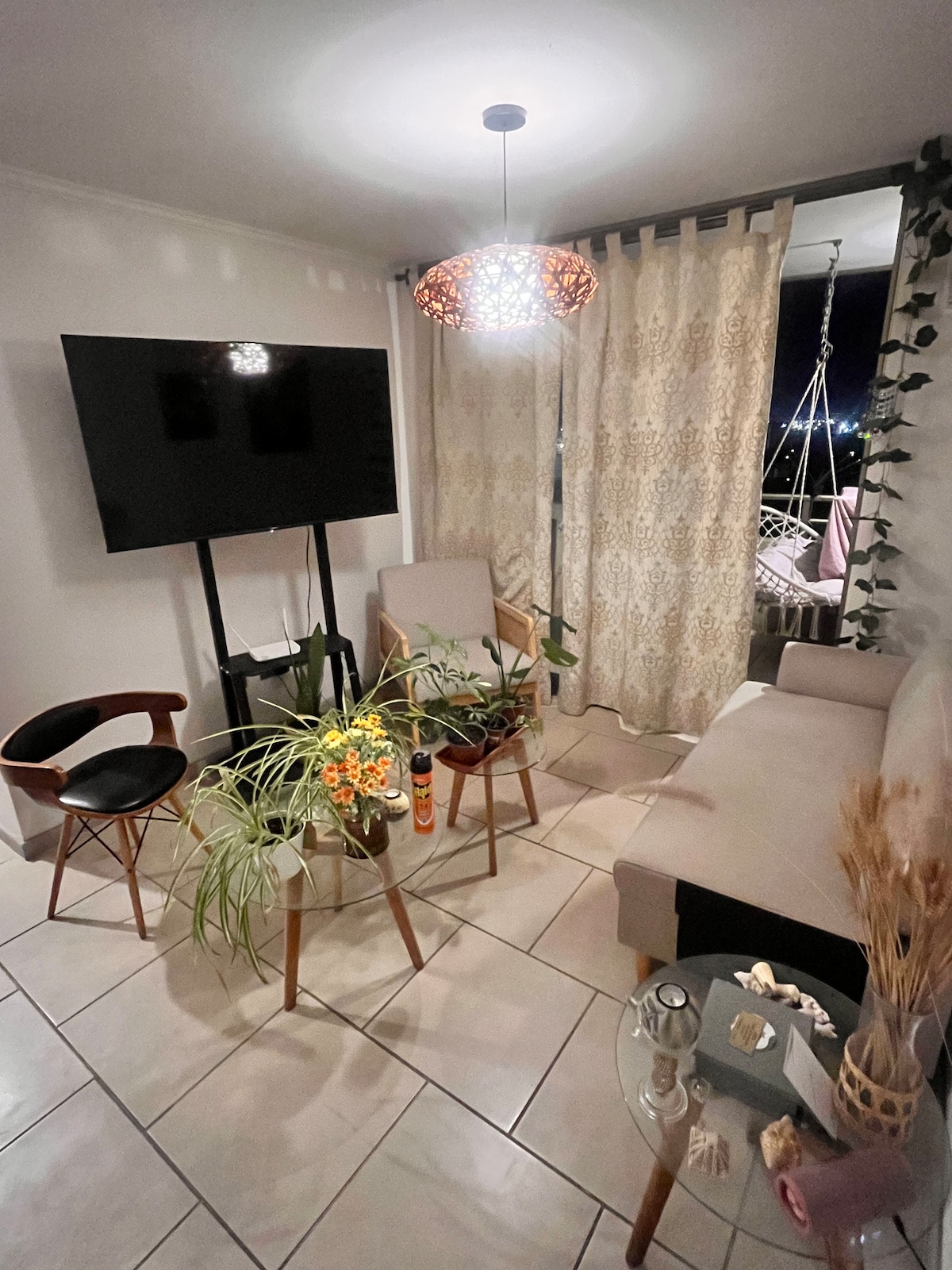 A cozy, fully furnished interior mini apartment for rent with transportation to the door, ideal for a person or couple looking for comfort and practicality. It has: -27 square meters of intelligently distributed space. -WiFi -Room room with a 2-seater bed and closet -Water dispenser -Work space - Bathroom - Kitchen with all the amenities -Refrigerator/TV -Plancha/hair dryer/linen Located near: - Miramar School - U. de Tarapacá - Public transportation at the door