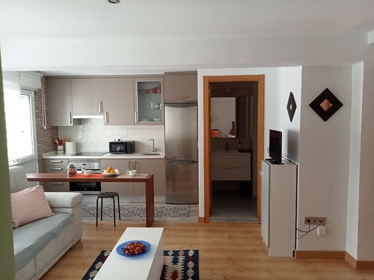50m2 apartment 2 minutes walk from the beach, less than 500m from the bus and train station. A three-minute walk from downtown Gijón. Supermarkets and parks in the area. All exterior, spacious and sunny. Fully equipped kitchen, 40"TV with Amazon Fire Stick. Double bed, bathroom with bathtub and shower. To park the car there is a white zone (no need to pay O.R.A) 5 minutes away and you could get a private garage space (increase in the final price) VUT 788 AS