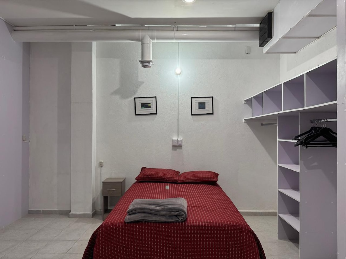 MADE IN MEXICO, we prepared this space for you, a spacious and private room with a high ceiling, which gives it an atmosphere of spaciousness. It has a refrigerator and a microwave to prepare and store your food during your stay. The bathroom is inside the bedroom for your entire privacy and comfort. We are in an area of restaurants and small bars, but if you like, it is also just a 12-minute walk from the main downtown attractions.