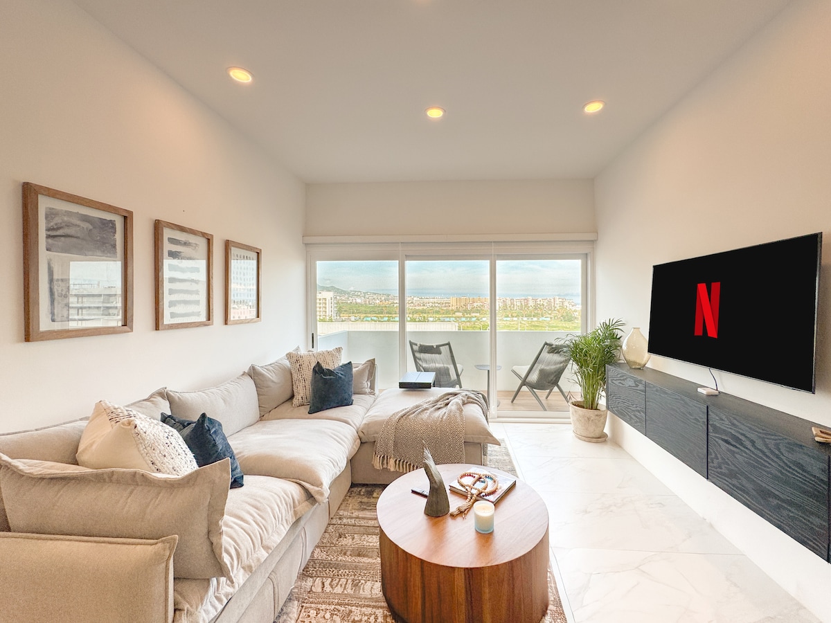 Brand new, bright apartment curated with modern Mexican art pieces, just a 5-minute walk from the beach. Enjoy two private terraces, a large resort-style heated pool, jacuzzi, fire pit, and lounge areas. Fully equipped kitchen with coffee & tea station, washer/dryer, fast Wi-Fi, beach gear, and A/C in every room. 2 BD + 2 BR + full sofa bed , comfortably sleeps up to 5. Gym, sauna, spa, and private parking, 24/7 security. Restaurant, OXXO, pharmacy outside the building, Costco 5 min away.