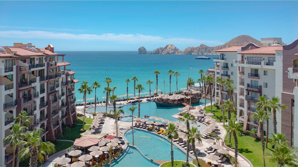 Beachfront paradise at Villa del Palmar on Cabo's best swimmable beach! This stylish studio features a fully equipped kitchenette, private balcony, and access to world-class resort amenities including infinity pools, spa, fitness center, and multiple restaurants. Steps from downtown Cabo's dining and nightlife, yet peaceful enough for total relaxation. Perfect for couples or solo travelers seeking luxury without the all-inclusive price. Your unforgettable Cabo escape awaits