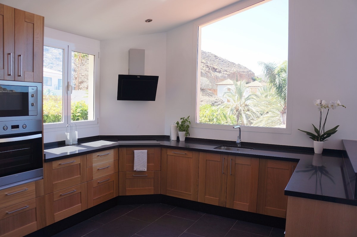 Beautiful private villa with heated pool. Newly built, high-quality and fully equipped villa. It's your perfect home for a sunny and quiet vacation with mountain views in the island's southwest. Spacious and modern, with large terraces, the villa is located in a quiet area of the Tauro development, in the municipality of Mogán. Less than 1 km from the Anfi Tauro golf courses, 5 minutes from Amadores, 2.2 km from Tauro beach and 15 minutes from Maspalomas.