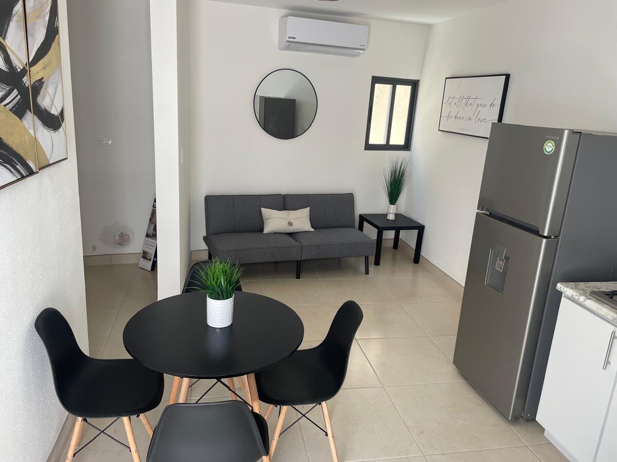 APARTMENT A - Ideal for relaxing if you come to the CONSULATE for RESIDENCE or VISA. Work or visit. Full apartment (NOT shared) Clean and spacious. KITCHEN equipped with necessities, air conditioning, Wi-Fi. A QUIET AREA 📍10–15 minutes from the U.S. CONSULATE CAS and 10 minutes from the AIRPORT. Pharmacy, Oxxo and food nearby. 🚗 Parking. FREE (shared) 🍼 Playpen, chair at no cost 📸 ID required; only registered guests will be allowed to enter 📍quiet hours 🚫NO VISITORS 🚫NO SMOKING ⚡ Self check-in