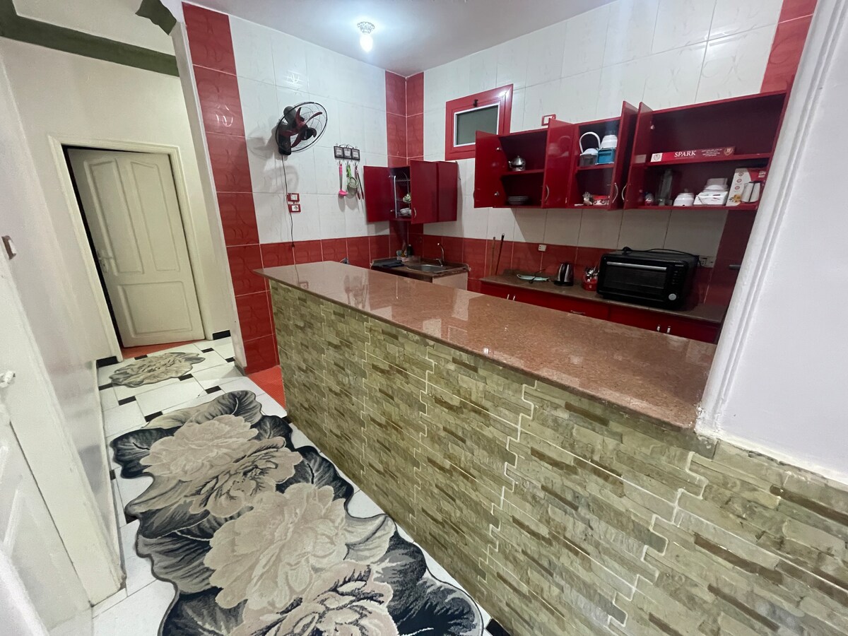Ce logement neuf affiche un style typique. Décoré par nos soins mariant inspiration orientale et design contemporain. Situé au 1ème étage, cet appartement de 90 m2 dispose de 3 pièces et vous disposerez d’un balcon avec vue directe sur la Mer Rouge. Cuisine aménagée, cuisinière gaz, réfrigérateur. SDB avec WC lavabo et douche. TV LCD Ventilateur dans salon principal. Air conditionné dans 2 chambres + séjour. Réveillez-vous tous les matins avec le soleil de votre lit, devant la mer Rouge.