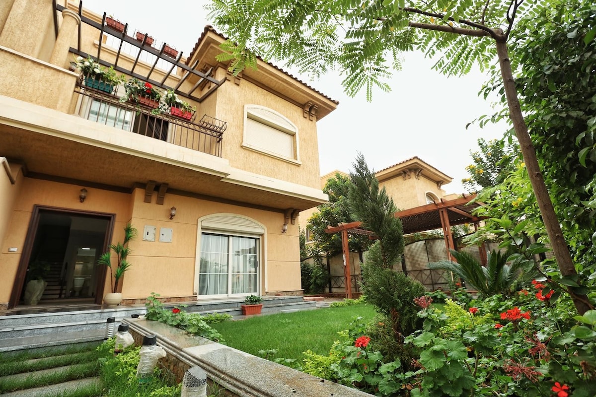 Welcome to your private Madinaty retreat! 🏡✨ Located in Group 18, steps from South Park & Open Air Mall for dining & shopping. 🛍️🍴 This standalone villa features 3BR (Master King + 2 Queens), a nanny room, and 4 baths. 🛏️🚿 Enjoy a full kitchen with dishwasher, private garage, and a massive garden with outdoor dining! 🌳☀️ Easy self check-in via key lockbox. 🗝️✅ Note: Proof of marriage is mandatory for couples if any guest is Egyptian. 📜❤️